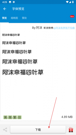 2、在字体预览页面中,点击底部下载按钮,等待字体下载完成。