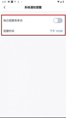 4、在系统通知提醒页面里,将每日提醒背单词的开关打开,并设置好提醒时间,即可完成背单词提醒的设置。