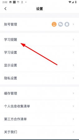 2、在设置界面中,点击学习提醒的选项,进入该页面。