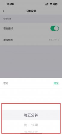 2、在乐跑设置页面里,找到播报频率选项并点击,会弹出频率选择列表。