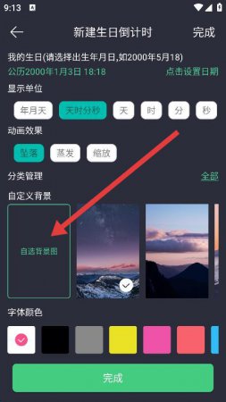 3、进入新建事件页面后,找到自定义背景板块,点击自选背景图。