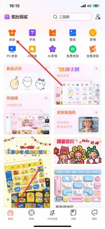 1、打开搜狗输入法,点击底部导航栏中的商城 ,点击皮肤选项,进入皮肤选择界面。