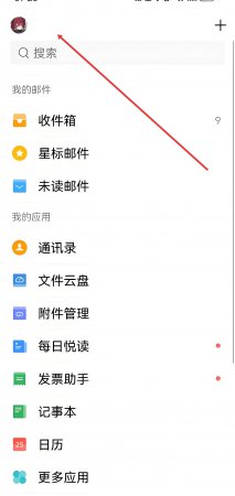 1、进入腾讯企业邮箱主界面后,点击左上角头像,进入我的邮箱的页面,这是设置签名的第一步。
