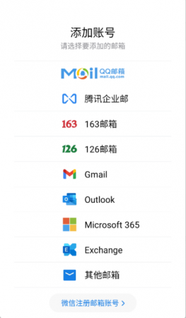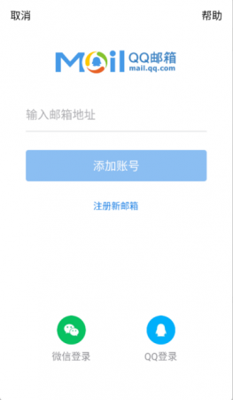 2、之后进入添加账号界面,支持多个邮箱账号登录,可以使用qq邮箱、腾讯企业邮箱、163邮箱、126邮箱、Gmail邮箱等账号登录;