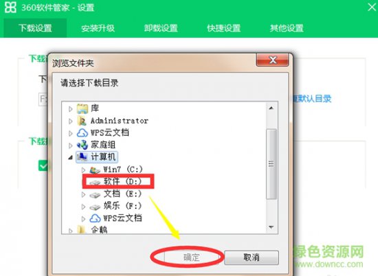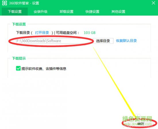设置默认下载目录为:D:\360Downloads\Software;