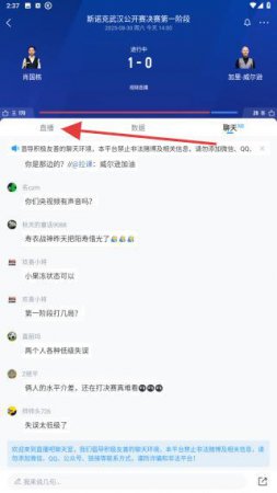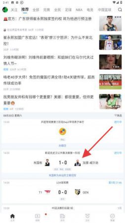 1、打开直播吧app,在推荐的页面内找到正在直播比赛的内容,点击即可跳转到该页面。