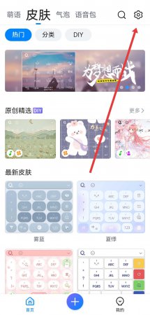 1、在QQ输入法的首页,需要点击右上角设置的图标,进入QQ输入法的设置页面。