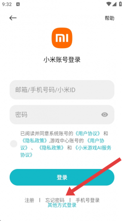 1、在小米账号登录的界面,需要点击忘记密码的选项,进入密码重置的流程。