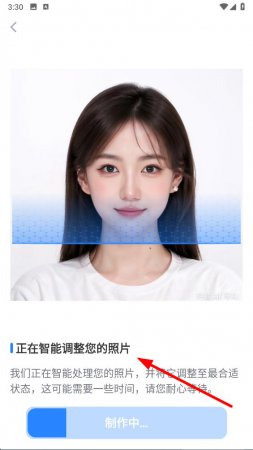 2、从相册选取需要更换底色的证件照后,等待软件智能调整照片,耐心等候制作进度。