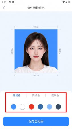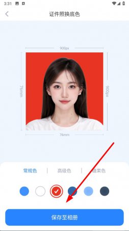 4、选好背景颜色后,点击界面下方的保存至相册按钮,将换好底色的证件照保存。