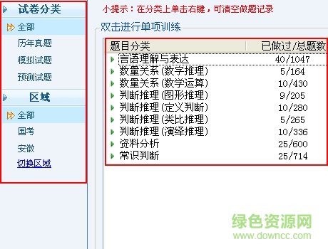 按考试的科目、章节进行分类练习,针对性强。覆盖了应考的全部知识点,并且可对试卷类型,区域进行赛选。