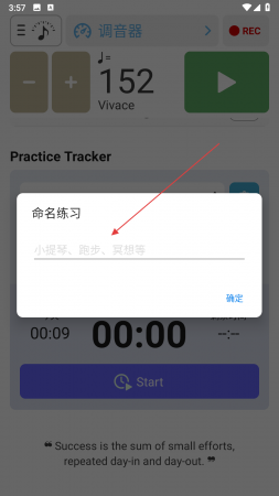 2、点击Start按钮后弹出命名练习窗口,在输入框内输入练习项目名称,输入完成点击确定。