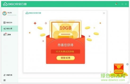 1.首先下载最新版客户端,新用户直接选择注册账号,注册完成后会跳转到官网用户中心界面,在弹出的新人福利界面直接领取5GB奖励空间;