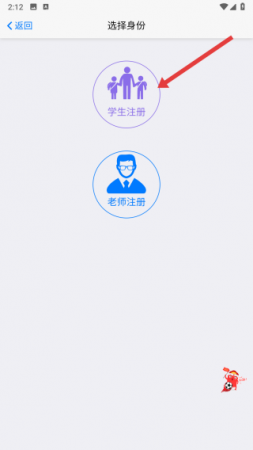 3、在选择身份页面中,可以点击学生注册选项,注册学生账号。