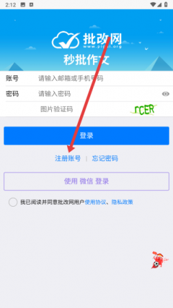 2、在进入到登录页面后,若没有账号可以点击下方注册账号按钮,进行注册。