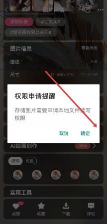 4、若弹出权限申请提醒,点击确定按钮,权限授予后,壁纸将自动下载并保存至本地设备。