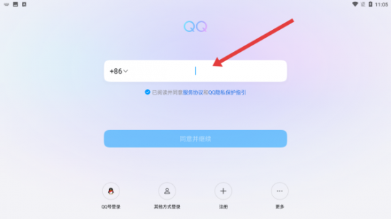 3、在勾选完协议后,点击输入框输入手机号进行登录。