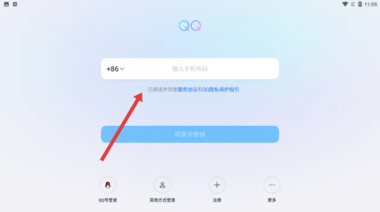 2、在进入到登录页面中时,首先需要点击勾选同意服务协议。