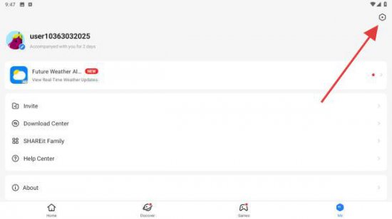 1、打开茄子快传APP,进入到个人主页内,点击右上角设置的图标。