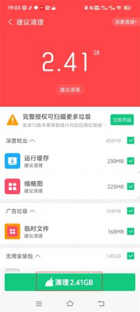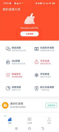 1、第一步先是点击屏幕中间的【立即清除】即可可以展开自己的手机垃圾清除任务;