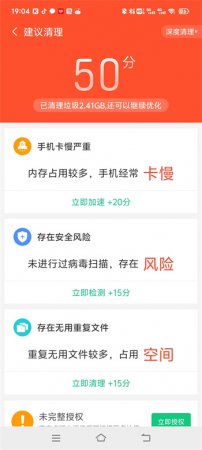 5、之后就可以完成自己的清除任务,了解这个软件为自己手机打的评分;
