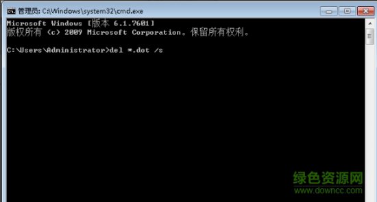 2.在命令窗口中输入del c:*.dot /s 并回车,运行完成后,即可正常打开word。
