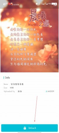 2、在字体预览界面,点击下方标有Unlock的按钮,解锁该字体。