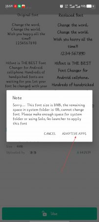 1、此软件需要root权限,请确保手机已root,并授予软件root权限。2、软件中的重启是指重启安卓系统,不是重启软件。3、字体文件一定不要太大,过大如意出错,会严重危害系统。4、网上搜来的大多数字体并不一定通用。