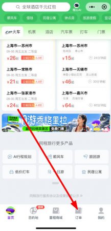 1、打开同程旅行应用,在底部导航栏中点击订单图标。