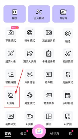 1、在软件首页找到【AI消除】,这里能帮助大家消除大部分的细节;