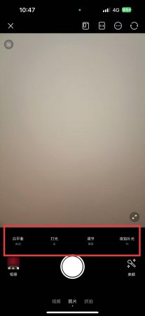3、在拍摄界面,可利用底部白平衡、打光、调节、夜拍补光等参数栏,调整拍摄参数,设置完成后,点击拍摄按钮进行拍照,拍出符合需求的照片。