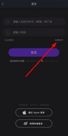 1、打开漫画岛APP进入登录界面,点击界面右上角的注册账号选项,进入注册页面。