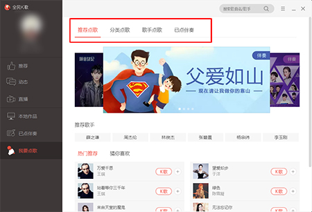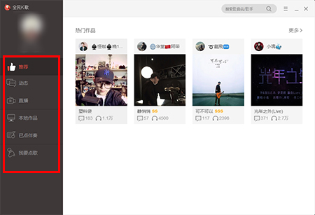 1.从本站下载好全民K歌后,双击进入,登录K歌后,主界面上选择你需要的功能
