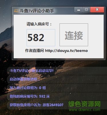 之后运行斗鱼TV评论小助手应用程序,在弹出的主窗口内填入需要获取弹幕的房间号码或者别名,点连接即可。接着的操作?没了,就这么简单!在启动完成之后小助手会有刷屏气泡提示提示小助手启动状态,可以依照这里的效果来测试自己设置的参数喔~