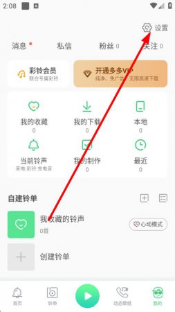 1、打开铃声多多App,点击界面右下角我的进入个人中心页面。