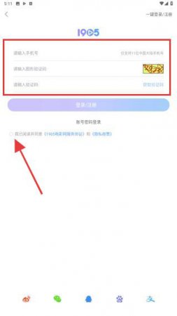 3、在输入框填写手机号码,识别并输入页面显示的字符,点击输入手机收到的短信验证码,勾选后点击登录即可。