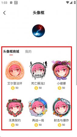 4、进入头像框界面后,在头像框商城中挑选喜欢的头像框,消耗对应数量的G币即可进行更换。