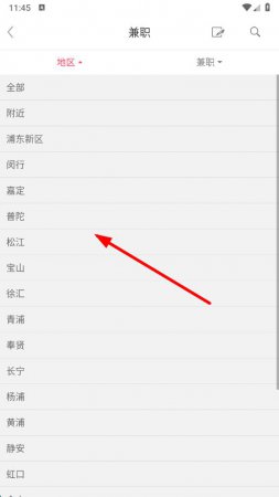 2、在兼职信息页面,点击地区选项,筛选想要找兼职的地区范围。