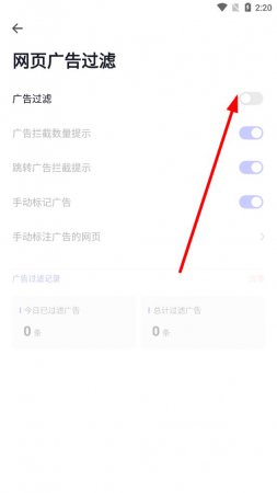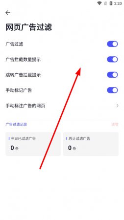 3、按需开启广告拦截数量提示、跳转广告拦截提示、手动标记广告等功能,以获得更好的广告过滤体验。