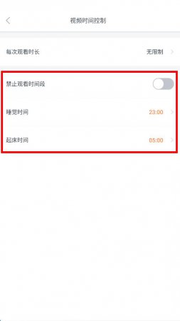 3、在视频时间控制页面设置禁止观看的时间段后,将其开启,这样在该时间段内就无法观看视频了。