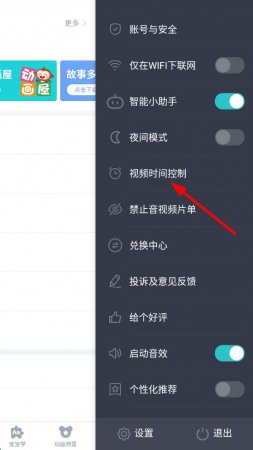 2、进入设置页面后,在菜单栏里找到视频时间控制选项并点击。
