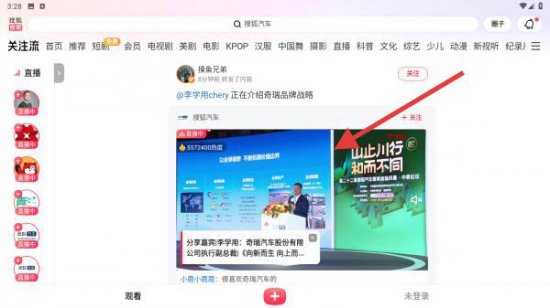 1、在关注流页面中可以看到很多时下热门的直播的视频,都是根据用户口味进行推荐的,可以进行筛选关注。