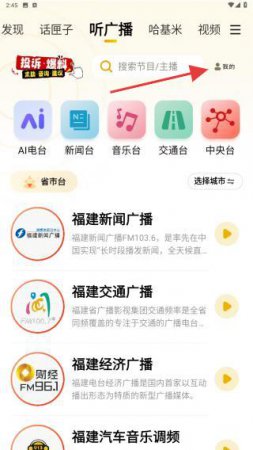 1、打开阿基米德电台APP,进入到首页内,点击我的图标。