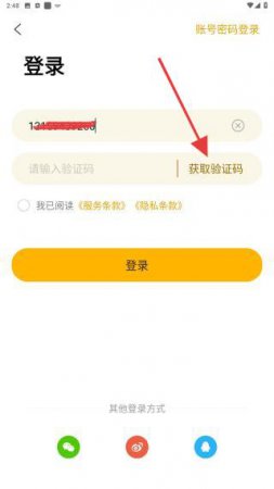 3、在登录的页面内,输入登录的手机号,并点击获取验证码。