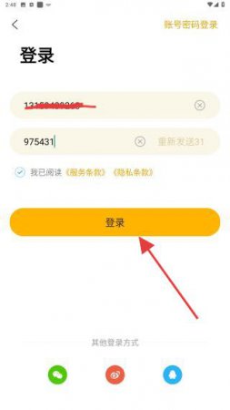 4、将收到的验证码输入到输入框内,再点击登录的按钮即可登录成功。