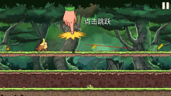 坐骑系统是游戏的一大特色,有些类似《Jetpack Joyride》的模式,骑上小鸟可以在空中飞翔,而骑上野猪就开启了霸体模式来击毁障碍物,另外似乎还有长颈鹿。游戏给人的感觉就是难度和刺激兼具,那种前有虎狼(障碍物),后有追兵(香蕉皮),主角被夹在中间,一碰就死的紧迫感不言而喻。