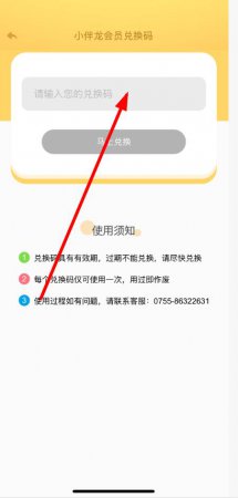 3、在小伴龙会员兑换码页面,输入您的兑换码,然后点击马上兑换即可完成兑换。