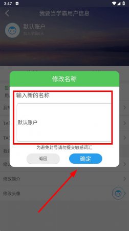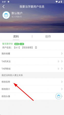 3、在用户信息页面里,找到并点击修改名称选项,弹出修改名称的输入框。