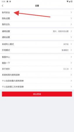 3、在设置页面内,点击账号安全的功能按钮。