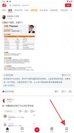 1、启动虎扑APP,进入到首页中,点击导航栏中我的图标。